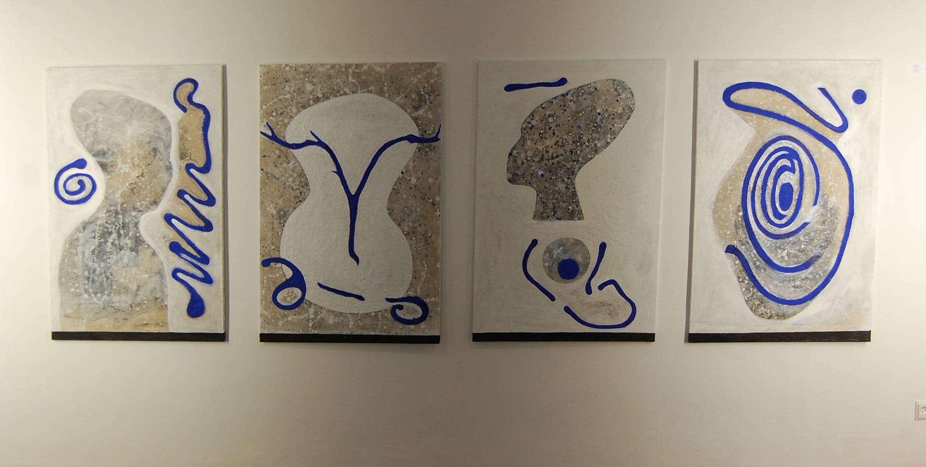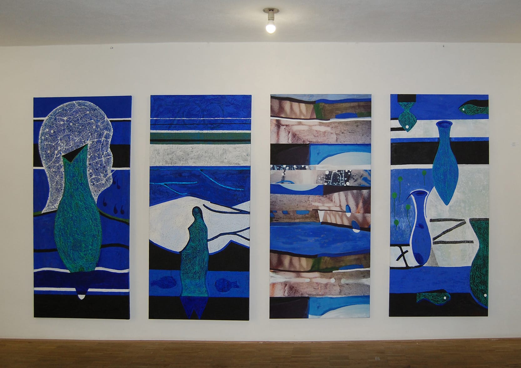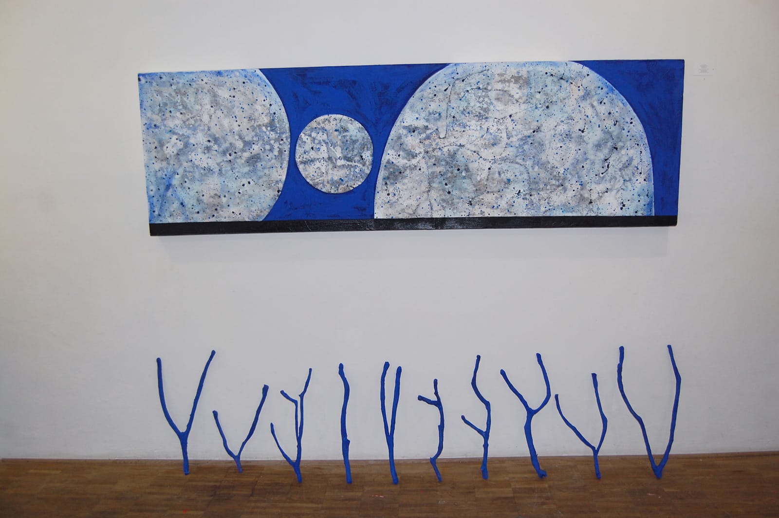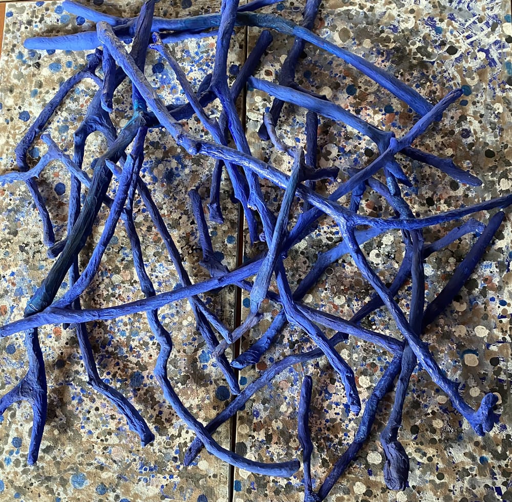 Dabei lebt sie - äußerst bodenständig - im “Hier und Jetzt”. Nach Charlotte und Atlanta in den USA reist sie auf Einladung mit einer Kölner Künstlergruppe, aber ohne Kunst im Gepäck. Der Aufenthalt bei der Gastfamilie, deren Spurensuche nach den ethnischen Wurzeln sowie die riesigen alten Bäume und deren Wurzeln und Äste, inspirieren sie zu den “Roots”, raumfüllenden Wand- und Bodeninstallationen aus umwickelten (“mumifizierten”), bemalten Holzteilen.